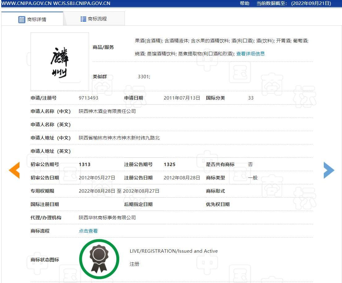 申请人-陕西神木酒业有限责任公司,创建于一九八四年,前身为“陕西省神木县酒厂”,经过三十年的苦心经营,成为生产和经营酒类商标的知名企业,2010年“麟州”牌系列白酒被陕西省人民政府认定为“陕西省名牌产品”,随着企业技术创新和产品品牌的不断提升,“麟州”牌系列白酒的消费市场也在不断扩大,销量剧增,已成为神木县非煤企业中的税利大户。
