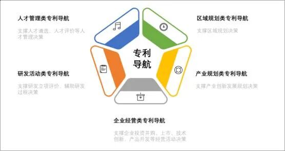 专利导航可以分为以下几类:区域规划类专利导航、产业规划类专利导航、企业经营类专利导航、研发活动类专利导航以及人才管理类专利导航等。